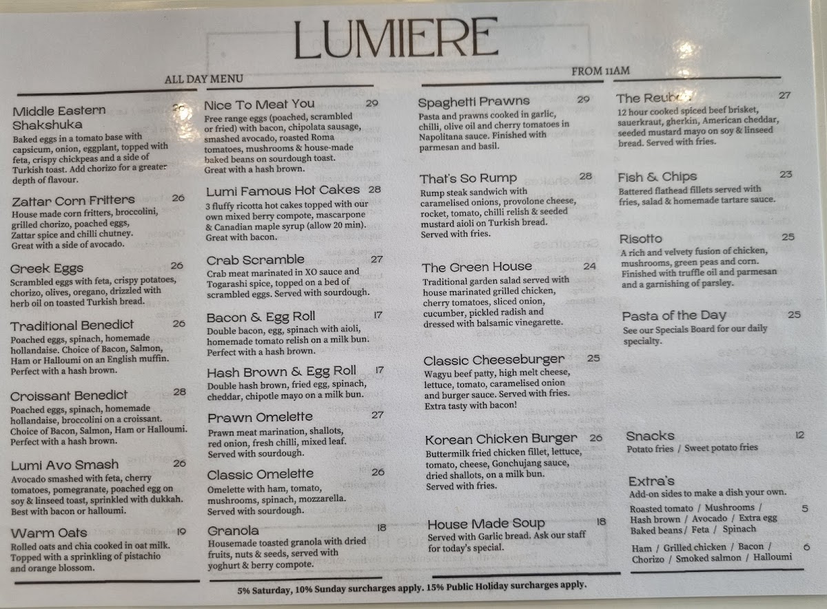 In short, Lumiere Cafe offers a delightful combination of excellent food and a welcoming atmosphere, perfect for any occasion.